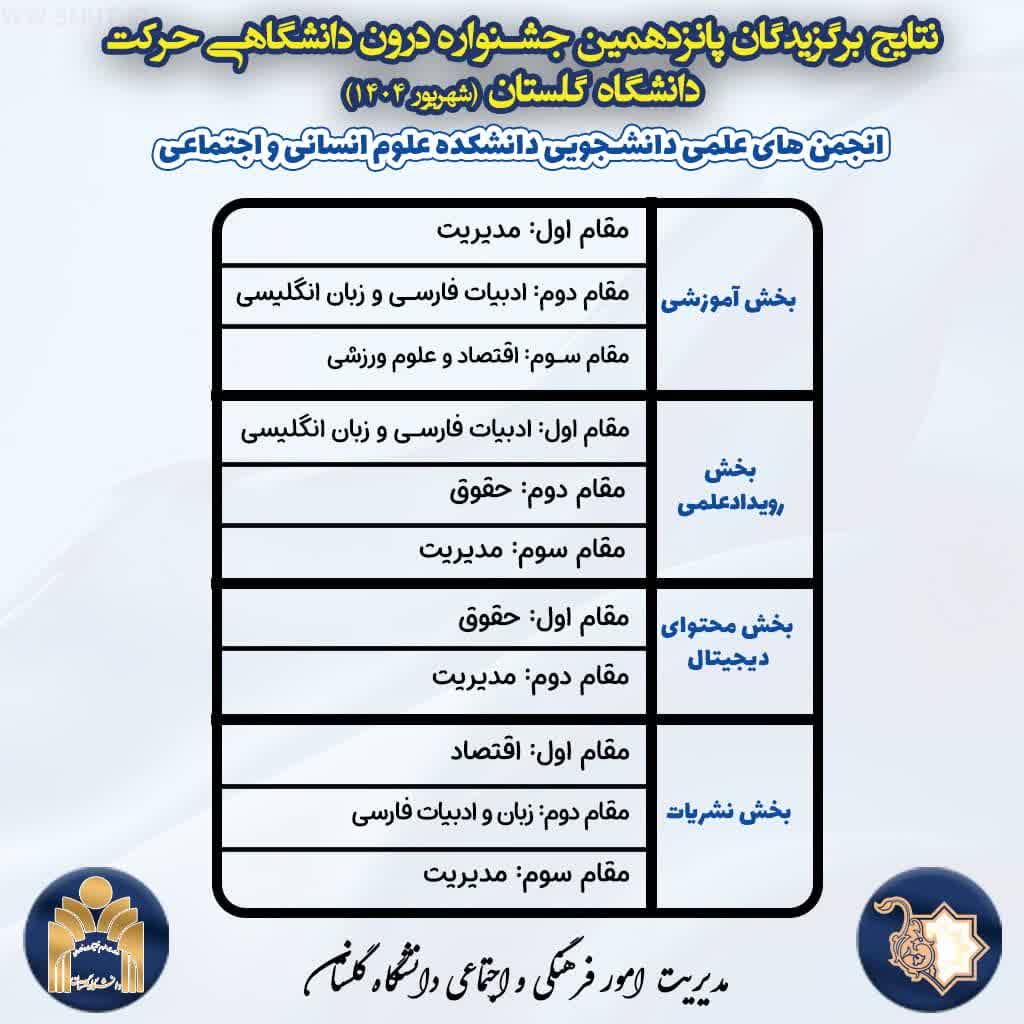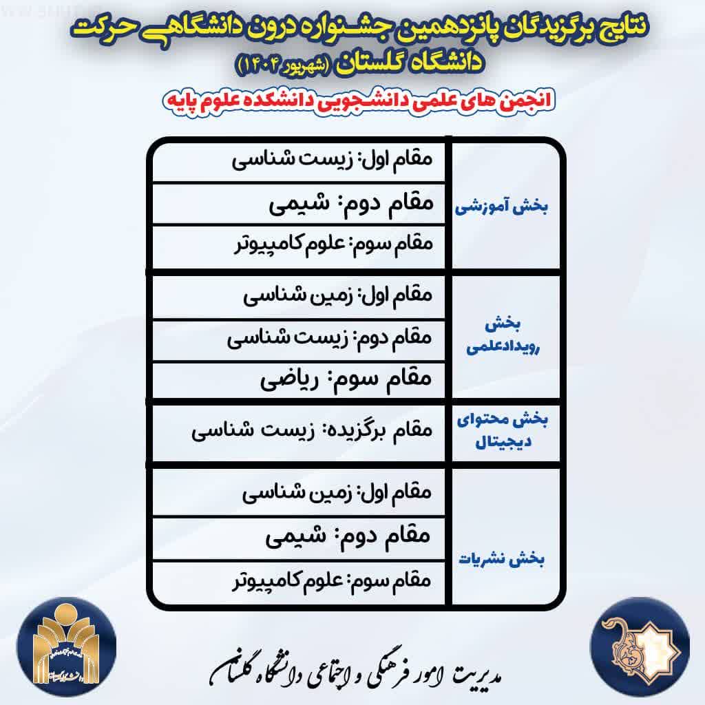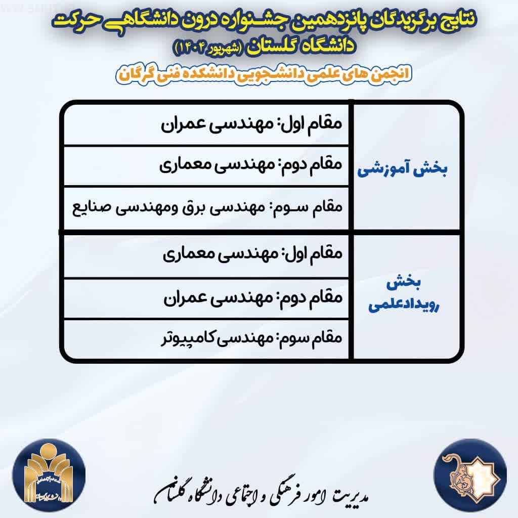 اعلام برگزیدگان پانزدهمین جشنواره دروندانشگاهی حرکت دانشگاه گلستان(ویژه انجمن های علمی)
