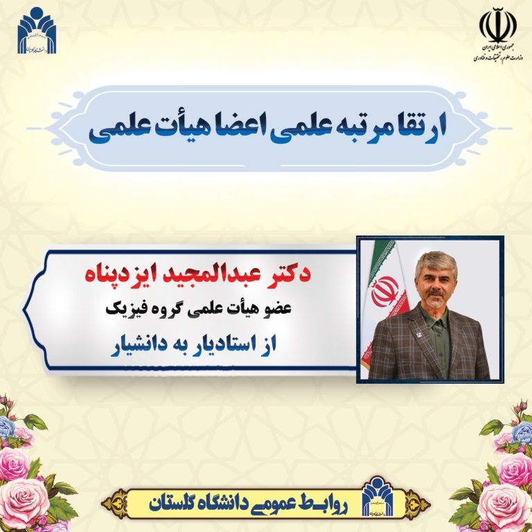 روابطعمومی دانشگاه گلستان ضمن تبریک صمیمانه به دکتر ایزدپناه و خانواده محترم ایشان، این موفقیت را حاصل سالها تلاش علمی، پژوهشی و مسئولیتپذیری دانسته و برای ایشان در مسیر تعالی علمی و خدمت به جامعه دانشگاهی توفیقات روزافزون آرزو میکند.