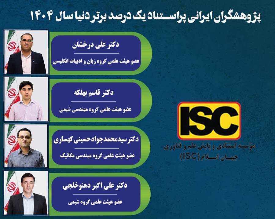 به گزارش روابط عمومی دانشگاه گلستان؛ بر اساس گزارش آخرین فهرست پژوهشگران ایرانی پراستناد یکدرصد برتر جهان که از سوی مؤسسه استنادی و پایش علم و فناوری جهان اسلام (ISC) منتشر شده است، نام چهار نفر از اعضای هیئت علمی دانشگاه گلستان در میان ۱۱۴۴ پژوهشگر ایرانی پراستناد جهان قرار گرفت.