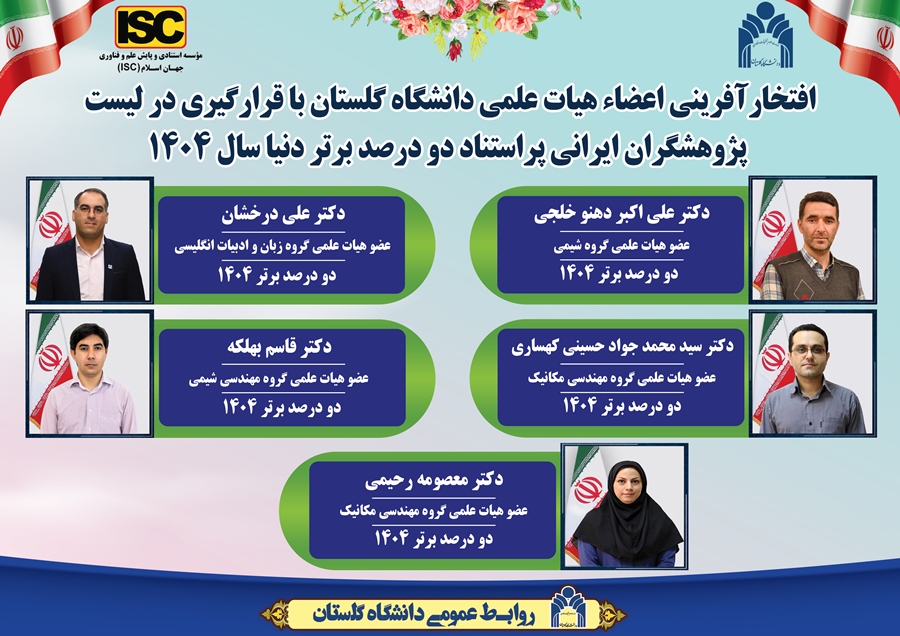 5 عضو هیئت علمی دانشگاه گلستان در فهرست دانشمندان ۲ درصد برتر جهان در سال 2025