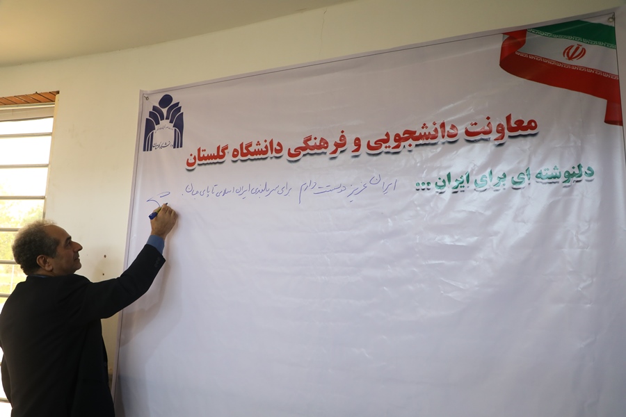 به گزارش روابطعمومی دانشگاه گلستان، به همت معاونت دانشجویی، فرهنگی و اجتماعی، مراسم دلنوشته برای ایران با حضور اعضای هیئت رئیسه، جمعی از اعضای هیئت علمی و کارکنان دانشگاه برگزار شد.
