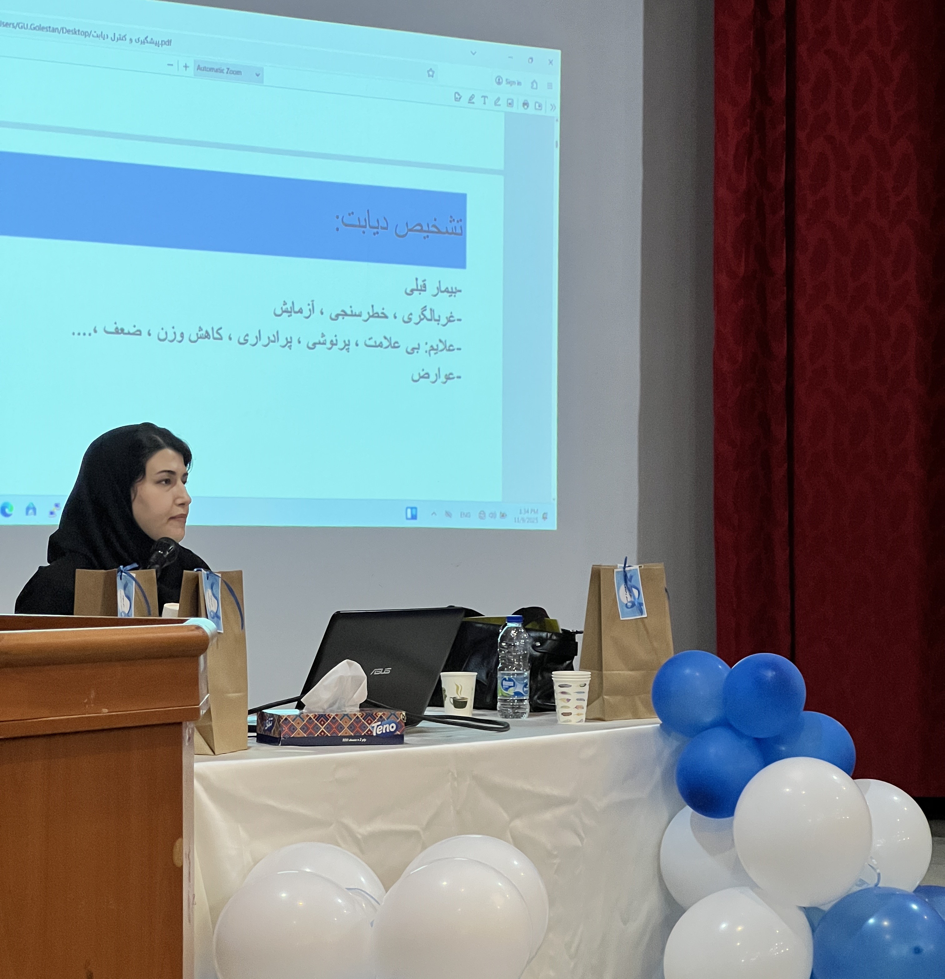 در این برنامه که با استقبال کارکنان دانشگاه همراه بود، خانم دکتر خسروی از پزشکان مرکز بهداشت شهرستان گرگان به عنوان مدرس کارگاه، مباحثی پیرامون عوامل خطر، اهمیت تغذیه صحیح، سبک زندگی سالم، روشهای تشخیص زودهنگام و راهکارهای کنترل دیابت ارائه کردند.