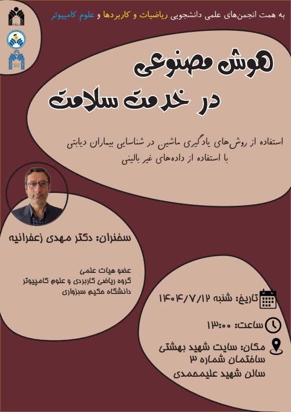 سخنران: دکتر مهدی زعفرانیه عضو هیات علمی گروه ریاضی کاربردی دانشگاه حکیم سبزواری