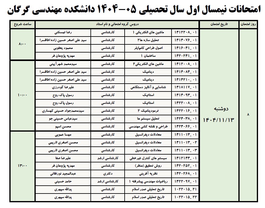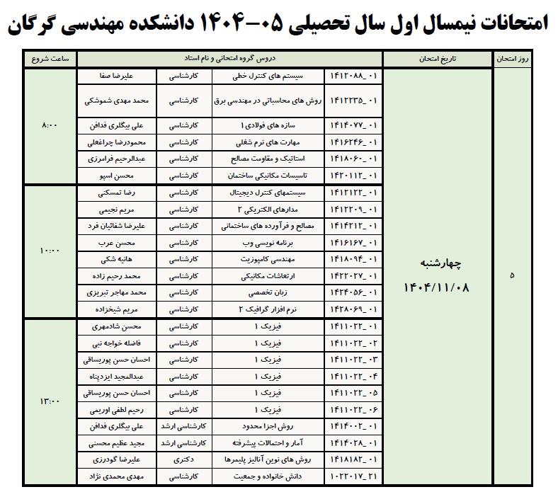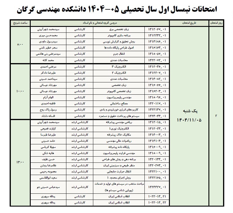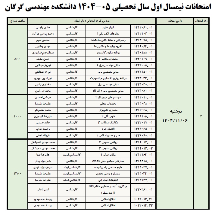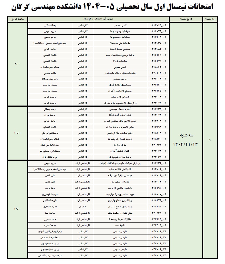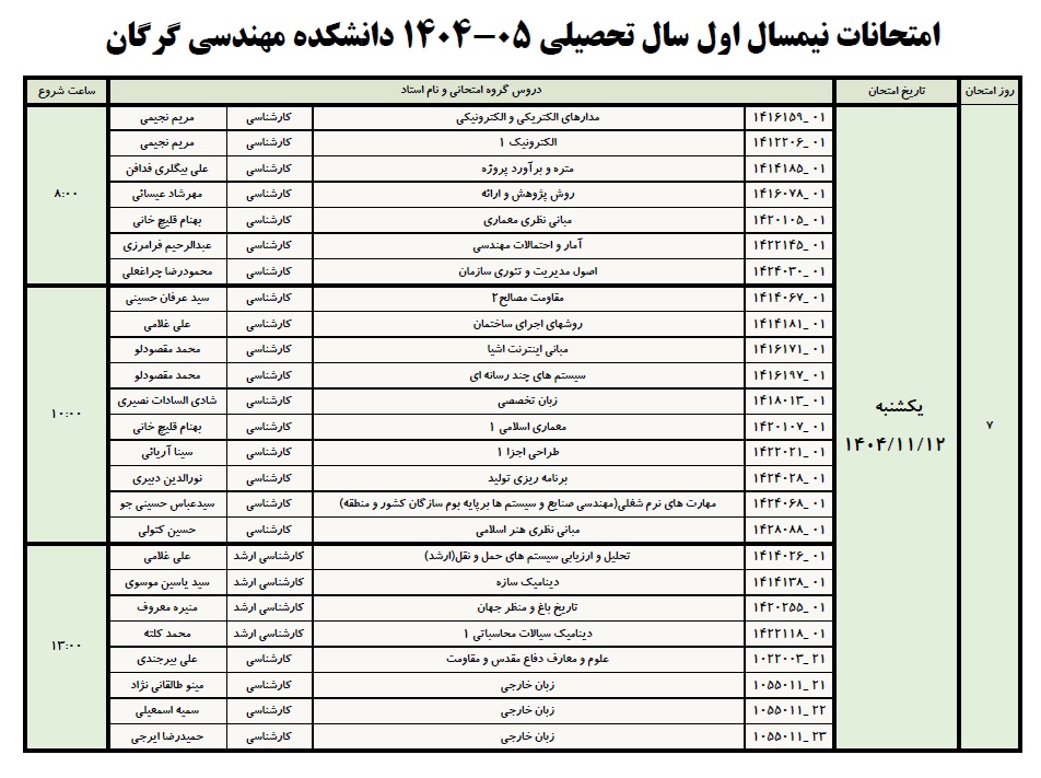 دانلود فایل پی دی اف برنامه امتحانی هفته دوم