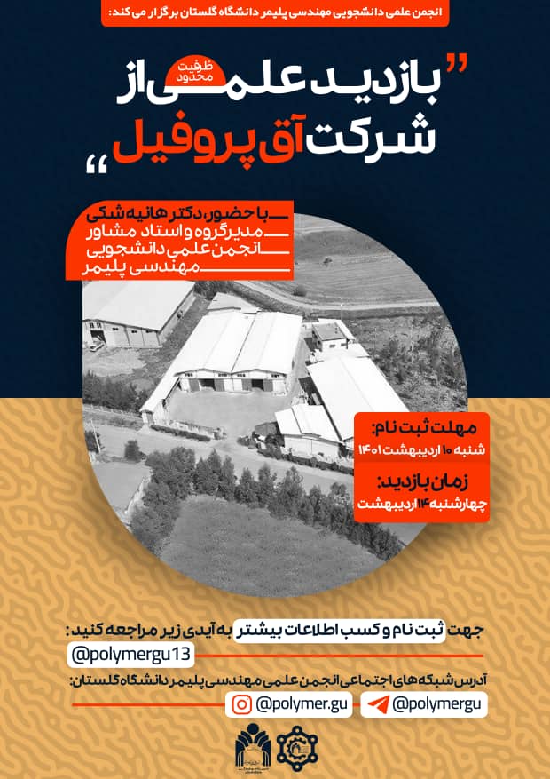 انجمن علمی دانشجویی مهندسی پلیمر دانشگاه گلستان برگزار می کند: 📢بازدید علمی از شرکت آق پروفیل