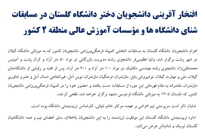 افتخار آفرینی دانشجویان دختر دانشگاه گلستان در مسابقات شنای منطقه دو کشور